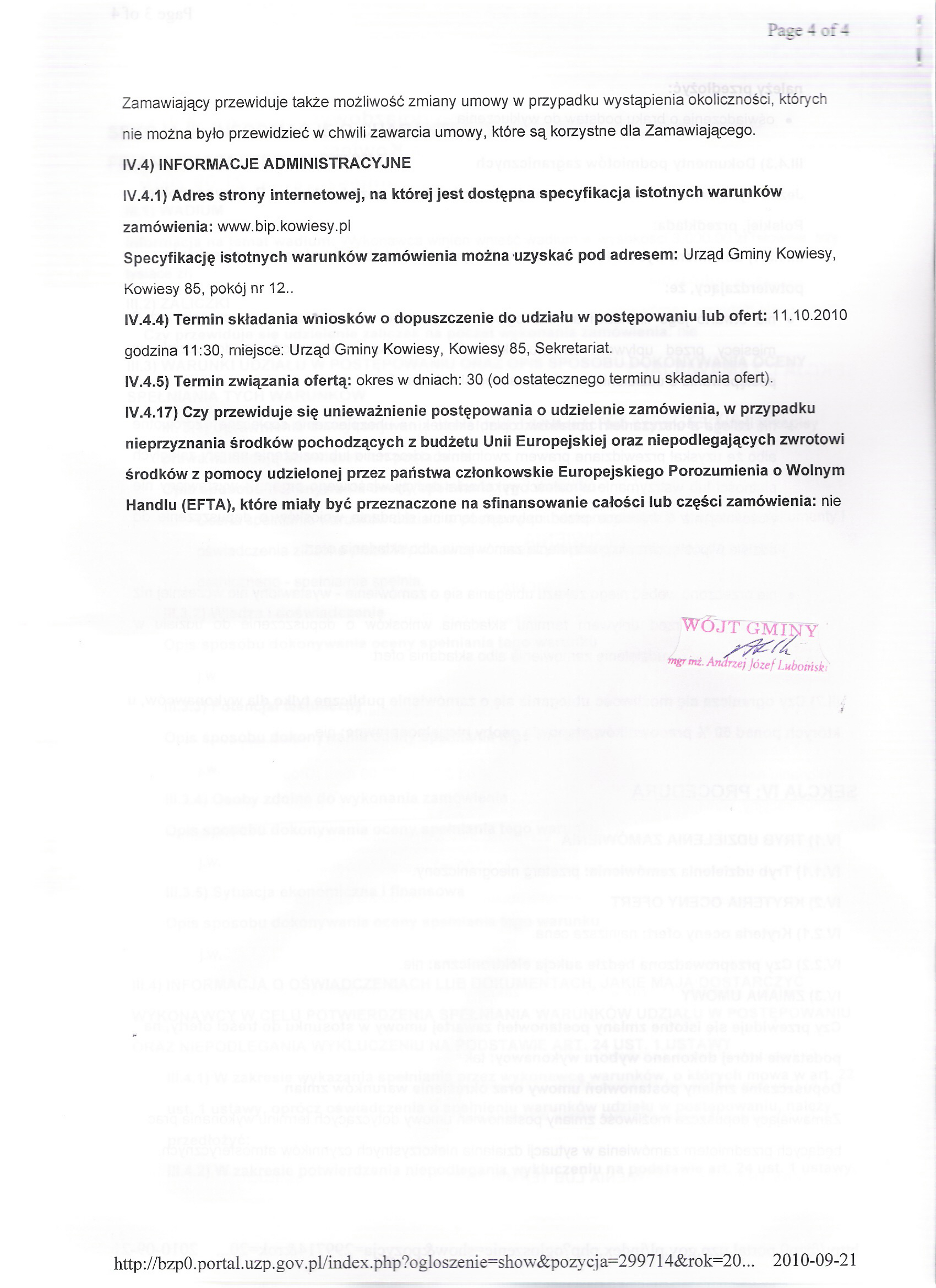 Data końca składania ofert: poniedziałek 2010-10-11 godz. 11:30